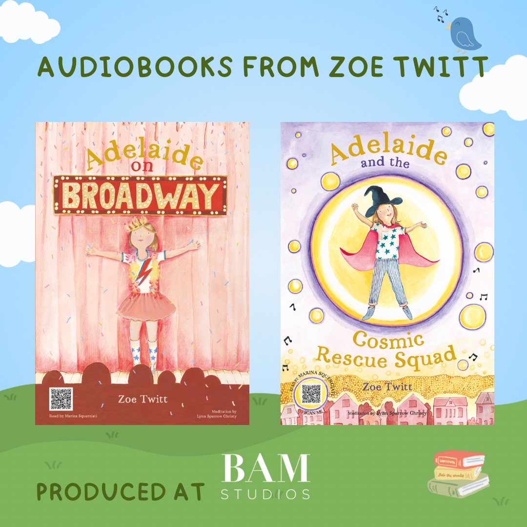 Anticipation builds for the upcoming release of author Zoe Twitt’s latest books, “Adelaide on Broadway” and “Adelaide and the Cosmic Rescue Squad”! Congratulations Zoe! 🙌 And congratulations to our exceptional sound team for producing an immersive soundscape for the audiobooks. It was truly an enjoyable project, and soon listeners will have the pleasure of experiencing it firsthand.** 🎧 Actress Marina Squerciati delivered an exceptional performance as the narrator, bringing the characters to life, while master hypnotherapist Lynn Sparrow Christy narrated the meditation portion. We are excited for readers and listeners to experience the magic of these stories. Zoe Twitt’s writing is sure to captivate audiences of all ages with its creativity, wit, and adventure.