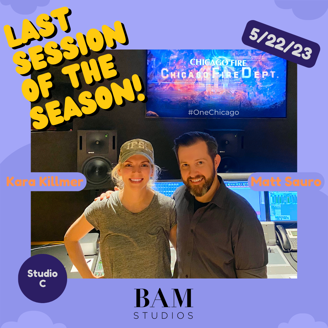 Congratulations to “Chicago Fire” actress Kara Killmer and BAM ADR Supervisor Matt Sauro on the season’s final ADR session! It was the last of the three “One Chicago” shows to finish recording.